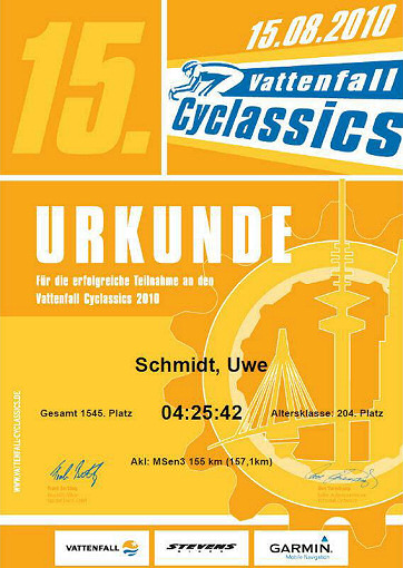 Wie bereits seit 14 Jahren versprachen auch in diesem Jahr die Vattenfall Cyclassics eine schöne Veranstaltung zu werden. Dieses beliebte Hamburger Event lockt immer wieder ca. 22.000 radsportbegeisterte Fahrerinnen und Fahrer auf landschaftlich schöne Strecken über 55 km/100 km/155 km. Während die 55 km und 155 km über die Westschleife nach Schleswig-Holstein führen, fährt man die 100 km über die Elbbrücken nach Harburg über die Südschleife. Obwohl das Wetter nicht ganz so strahlend wirkte wie die Jahre zuvor, so hatte der Wettergott doch für einen trockenen Rennverlauf gesorgt.