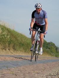 Nach dem Mittagsbuffet, das nach einer sausenden Abfahrt erreicht wurde, erschwerten schlechte Straßen und fehlende Ortsschilder die Weiterfahrt. Der Tagesspruch: "Wenn jemand in das Loch fällt ist nur noch der Helm zu sehen" traf den Nagel auf den Kopf. Dafür gab es auch kaum Autoverkehr. In Bernburg wurde noch kurz eingekehrt, allerdings gab es hier nur flüssige Nahrung. Nienstedt und Schönebeck waren die nächsten Städte und nach einer Fahrzeit von knapp 7 Stunden war die bisher schwerste Etappe gegen 18:00 Uhr mit 164 km beendet. Trotzdem blieb noch Zeit für flüssige Stärkung und auch noch für einen kurzen Abstecher in den See.