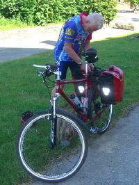 Auch heute eine Panne: beim Sportfreund Dieter Waldau hatte sich eine Speiche verabschiedet. In Prenzlau wurde daher ein Fahrradladen gesucht, Sonnabend 15:00 nahezu aussichtslos. Die einen kamen zu einem umfangreichen Eisgenuss (oder Milch), die anderen suchten das zweite Geschäft, natürlich geschlossen. Der Inhaber des ersten geschlossenen Geschäftes kam zu seinem Leidwesen noch einmal vorbei und erstaunlich: Er war sofort zur Reparatur bereit, nach 30 Minuten nahmen wir dann die letzten 10 Km in Angriff.