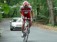 Die Startreihenfolge zum Bergzeitfahren über 4,3 km und 74 Hm auf dem Parcours Pfaueninselchaussee und Nikolskoer Weg war zuvor im Beisein aller Teilnehmer ausgelost worden. Als erster Starter setzte Spartenleiter Alexander Bößwetter Maßstäbe, als er nach einer Fahrzeit von lediglich 7:50 Min die Ziellinie auf dem Col de Moorlake erreichte. Liman Begolli, der für seinen starken Antritt am Berg berüchtigt ist, verfehlte diese Zeit um rund 3 Sekunden. Letztendlich gelang es nur Holger Stube, die Bestzeit von Alex zu unterbieten, denn er benötigte für die Strecke eine Zeit von 7:42 Min. Hier zahlte sich seine Vorbereitung im Hinblick auf seine bevorstehende Teilnahme am Ötztaler Radmarathon aus. Da die übrigen Teilnehmer bei diesem ersten Rennabschnitt mit größeren Zeitabständen ins Ziel kamen, war jetzt absehbar, dass einer dieser drei gestandenen Radsportler als Vereinsmeister 2013 hervorgehen würde.