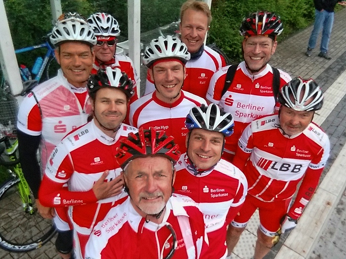 Eine kleine Delegation von 9 Radsportbegeisterten bestehend aus Berliner Sparkasse, Berlin Hyp und deren Ehemaligen trafen sich dort, um am Samstag den 18.06.2016 einzurollen und die ersten Vorbereitungskilometer für den Sonntag zu sammeln.
