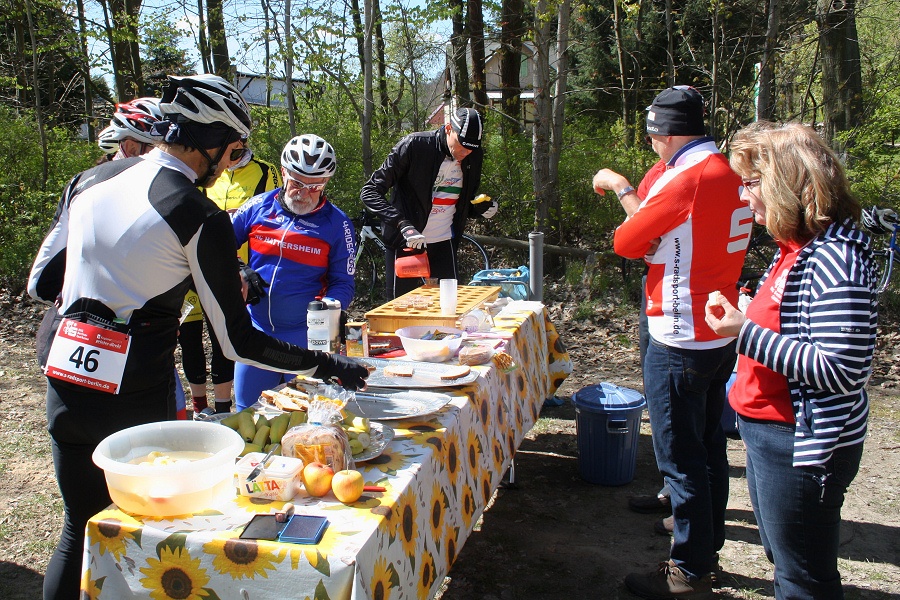 Wie altbekannt wird der letzte Kontrollpunkt des Tages am bewährten Platz in Grüntal von dem Vierergespann „Stullenwärtin“ Ines, „Obstwart“ Günter, „Getränkewärter“ Frank und Manfred von 11:00-16:00 Uhr besetzt.